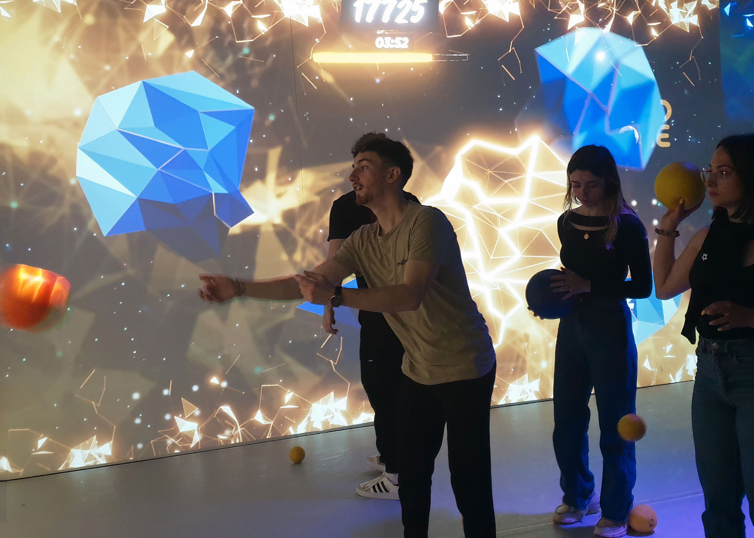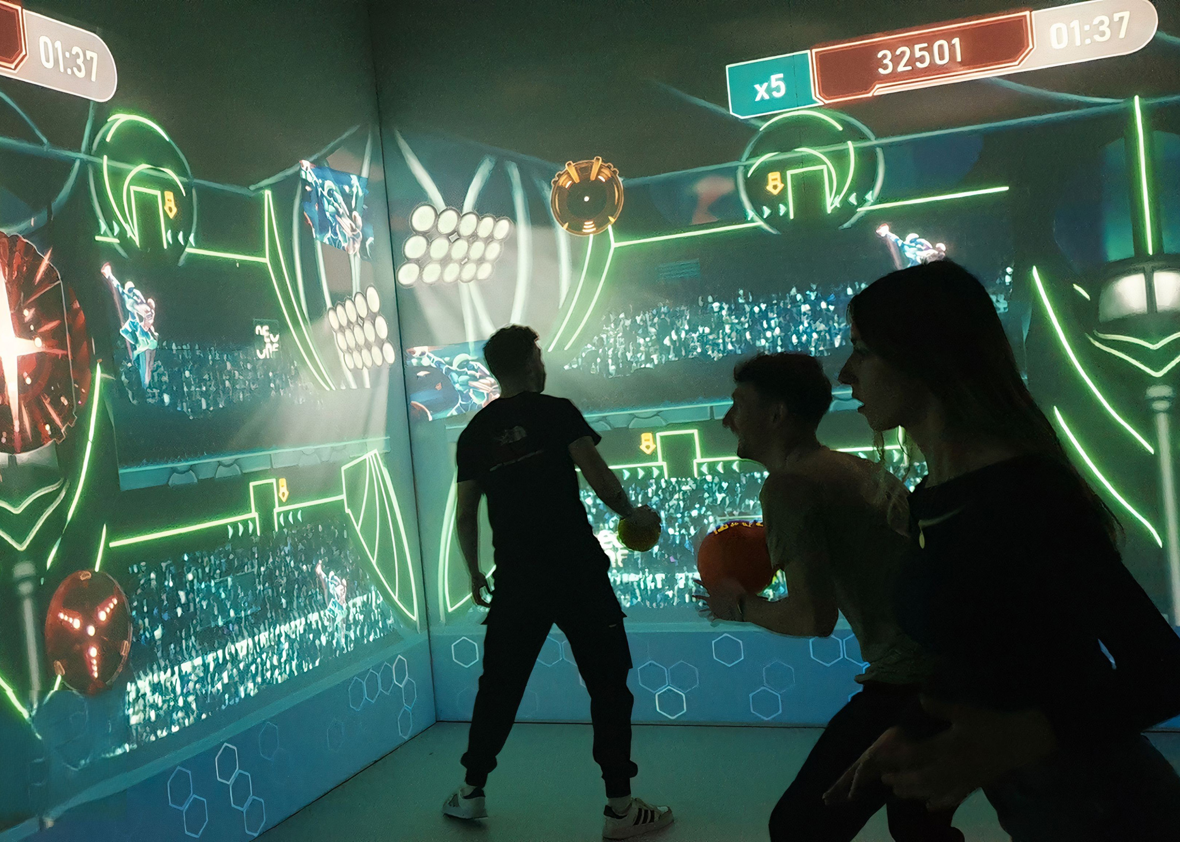 De muur reageert direct op jouw bewegingen. Geen controllers, geen knoppen, gewoon spelen.
